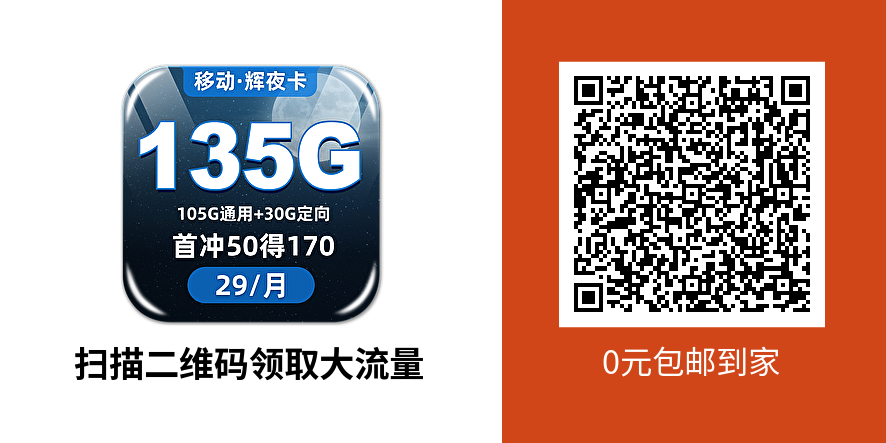 -联通大流量卡- 流量:135G通用流量/月 通话:100分钟通话/月 月租:29元/月 套餐介绍 充值100元参与活动,叠加0元130G通用流量包(有效期24个月,到期后可咨询运营商客服续约) 首月扣费方式:激活后按剩余天数发放流量和通话(130G流量包可全量享受)次月起全额到账 归属地:随机 办理年龄:16-60周岁 发货问题:不发货地区小编会推荐其他产品 激活方式:快递员激活,记得带好身份证哦 -电信大流量卡- 流量:185G高速流量/月 福利:首月免月租体验 月租:29元/月 套餐介绍 原套餐39元参与充值100送120元活动,本金100立即到账,赠送部分分次月起每月返还10元(120元返完后还可以继续参与该活动哦,这不相当于是长期29元了) 首月免月租:激活当月获得40元话费,激活即使用,不退返现金,相当于首月免月租 办理年龄:18-60周岁 禁发地:云南、北京、西藏、新疆(以运营商审核为准) 地址填写:详细地址不能含有学院、大学、酒店、酒吧、丰巢、菜鸟驿站等公共场所的文字,这类地址很可能下单失败,且失败后30天内不能再提交,请认真严格填写! -移动大流量卡- 流量:135G高速流量/月 福利:首月免月租体验 月租:29元/月 套餐介绍 在派件员处激活并充值50元话费后享优惠,不充值无法享受;参与首充50送120元活动,本金立即到账,赠予的120元从次月起分12个月每月返10元,赠费可抵扣月租! 首月免月租:激活当月免月租体验 本地归属地:下单地即归属地 归属地:本地归属地 办理年龄:18-60周岁 发货地区:天津、安徽、黑龙江、上海、山东、河南、江西、海南、广西、重庆、陕西、浙江、吉林、北京、宁夏、福建、江苏、内蒙古、四川、湖北、新疆