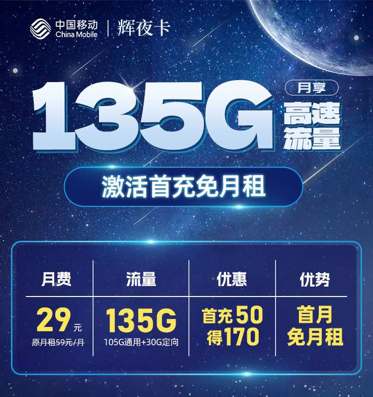 月租:59元,现仅需29元!首月免月租!