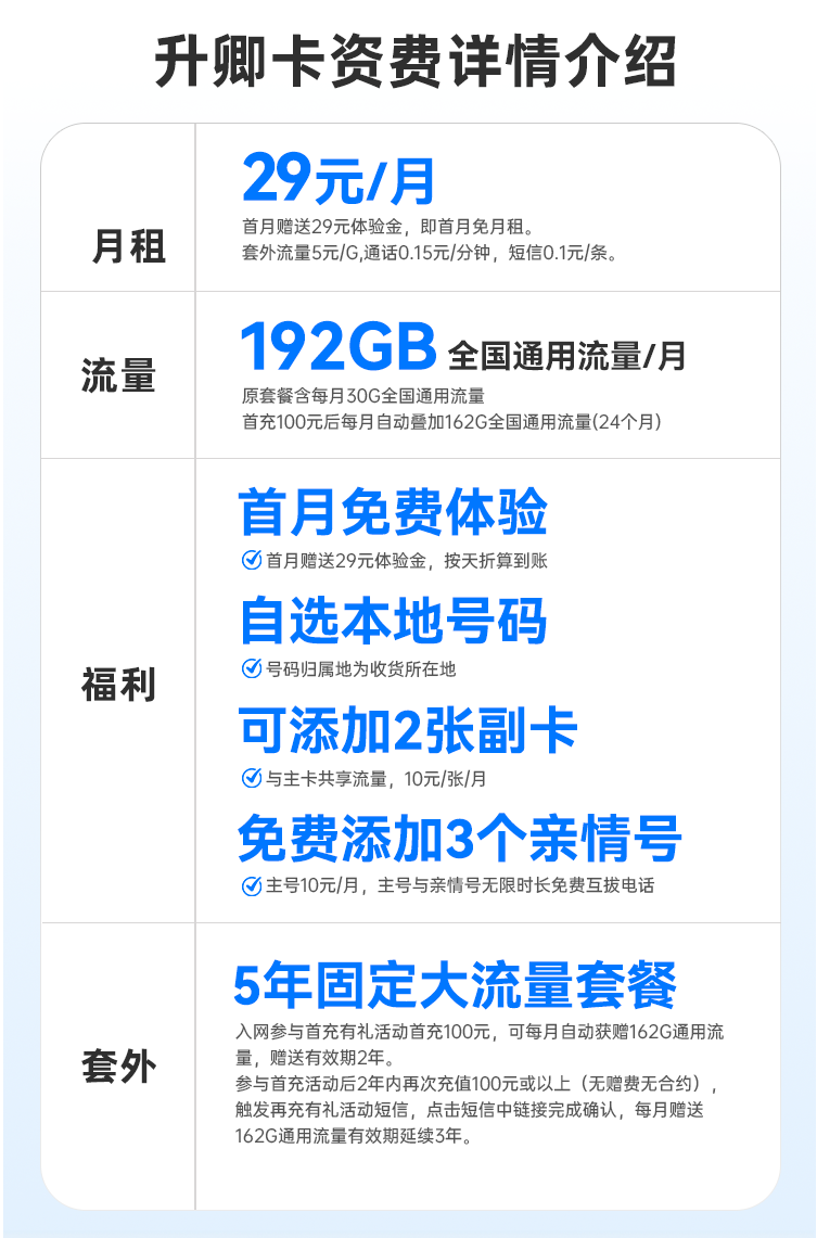 流量卡推荐——29元192G 广电升卿卡
